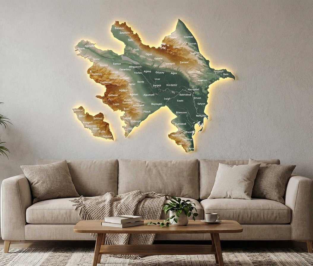 Ev dekorasiyasında fərqlilik axtarırsınızsa, Azərbaycanın xəritəsi ilə bəzədilmiş bu unikal məhsul tam sizin üçün yaradır. Bu gözəl dizayn, ölkəmizin müxtəlif bölgələrini fərqli rənglərlə təmsil edir və evinizə xüsusi bir atmosfer qatır. Xəritənin üzərindəki hər bir bölgə, Azərbaycanın zəngin mədəniyyətini və tarixi irsini simvollaşdırır.