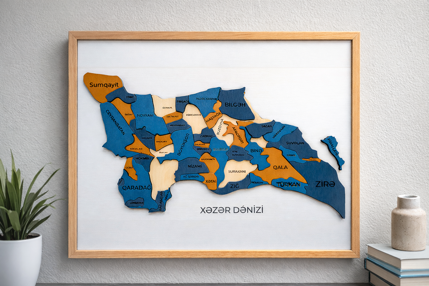 Endirim 21%🧩 Bakı Taxta Xəritəsi – Premium Divar Dekoru